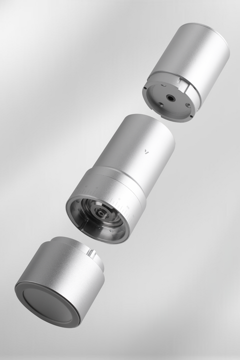 Introducing the Varia EVO Grinder, the world's first true alloy hybrid hand grinder that revolutionizes traditional grinding methods. Our groundbreaking approach combines the power of USB-C technology with the reliability of our hand grinder, resulting in a compact, lightweight, and exceptionally powerful device.